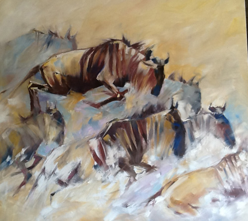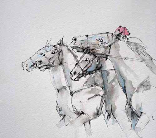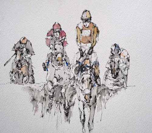 House Portrait commissions in watercolours and has experimented in large sketchy oils of racing and Big Game in Africa with emphasis on movement.